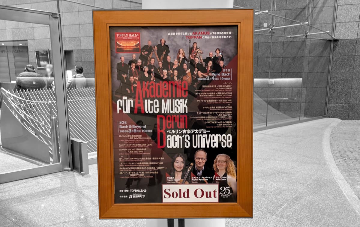 ●4日はTOPPANホールでベルリン古楽アカデミー(AKAMUS)。コンサートマスターは平崎真弓、オーボエはクセニア・レフラー、チェンバロはラファエル・アルパーマン。バッハを巡る2夜にわたる公演で、その第1夜 Pure Bach を聴く。オール・バッハ・プログラムで有名曲がたくさん並ぶ……と思いきや、異稿とか復元作品多めで、微妙に知ってる世界と違うパラレルワールド感あり。