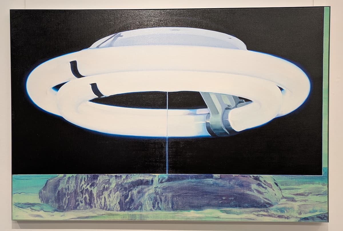 ●優秀賞に選ばれていた「幾千年」(黒澤匠)。蛍光灯自体が製造中止になりつつある過去の遺物であるわけだけど、さらにこの二重環タイプの照明器具は、ずっと前にシーリングタイプに置き換わっていて、ノスタルジックな存在になっている。なんだか超然として、一種の遺構みたいな趣。「幾千年」という題が効いている。審査員コメントではUFOを想起させるという指摘も。そうなのかな。