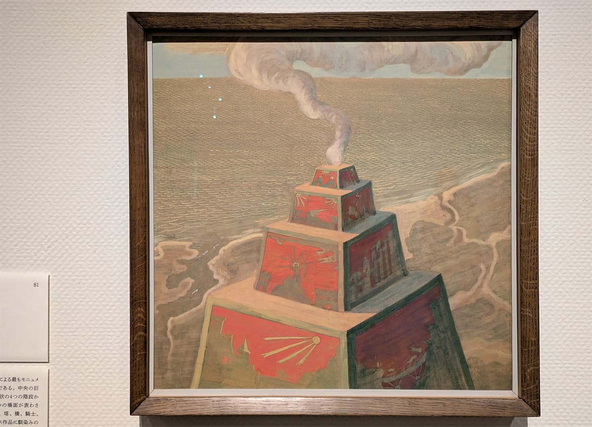 ●先日、東京春祭ディスカヴァリー・シリーズでリトアニアのチュルリョーニス(1875~1911)の曲を聴いたが、続いて国立西洋美術館の「チュルリョーニス展 内なる星図」へ。作曲家としても画家としても名を残した稀有な芸術家のふたつの顔を知る貴重な機会。上は今回の展覧会のキービジュアルとしても使われている「祭壇」(1909)。今回の展示のなかで、これが典型的な作風かといえばそうでもないと思うのだが、たしかに際立った一作。ピラミッドみたいな形状の巨大な祭壇で、てっぺんから煙が立ち昇る。コンクラーベみたい。この作品もそうだが、全般に神秘主義的傾向が強い。