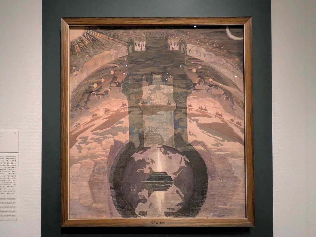 ●これは「レックス(王)」(1909)。晩年の大作、といっても35歳で早世しているのだが。モチーフは地球、天上、城、太陽、星々、彗星など。世界を統べる王とその影ということなのか。これも神秘主義的。